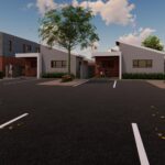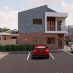 The modern-industrial design was developed to appeal to the urban population, and is carried through into the interiors with sloped high ceilings (roofs facing north for solar panels). We also proposed suspended lighting and use of internal courtyards and clerestory windows to maximise natural light for the reduction of energy consumption for a light airy interior.